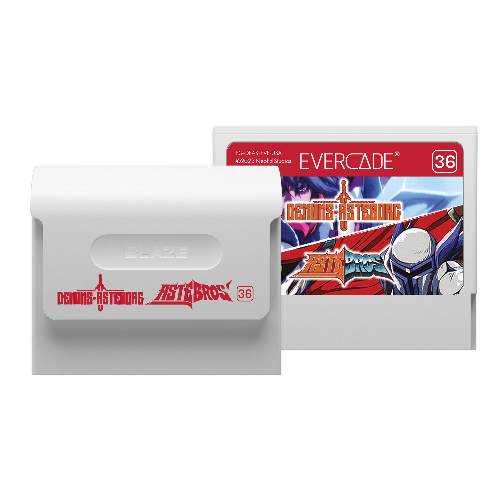 From Neofid Studios comes two 16-bit modern-retro games! This new dual cart collection for Evercade is playable on all Evercade consoles! Traverse the massive world of Asteborg and protect it from the demon hordes in the platformer Demons of Asteborg. Or discover all the treasure for yourself or share with a friend in the multiplayer dungeon crawler, Astebros!