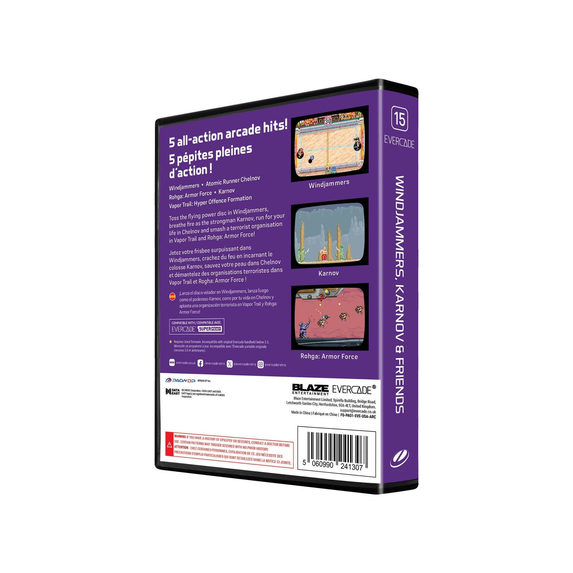 5 more arcade hits arrive on Evercade with the Windjammers, Karnov & Friends arcade game collection! Take on fast-paced flying power disc matches in cult classic sports game Windjammers, and hunt for the lost treasure of Babylon with the fire-breathing strongman Karnov. Also features the autorunning sci-fi action of Atomic Runner Chelnov, the spectacular aerial combat of Vapor Trail: Hyper Offence Formation and the explosive mech mayhem of Rohga: Armor Force. Compatible with all Evercade hardware (Handheld, Evercade VS, Evercade VS-R, Evercade EXP, Evercade EXP-R, Evercade Alpha) and Super Pocket consoles.